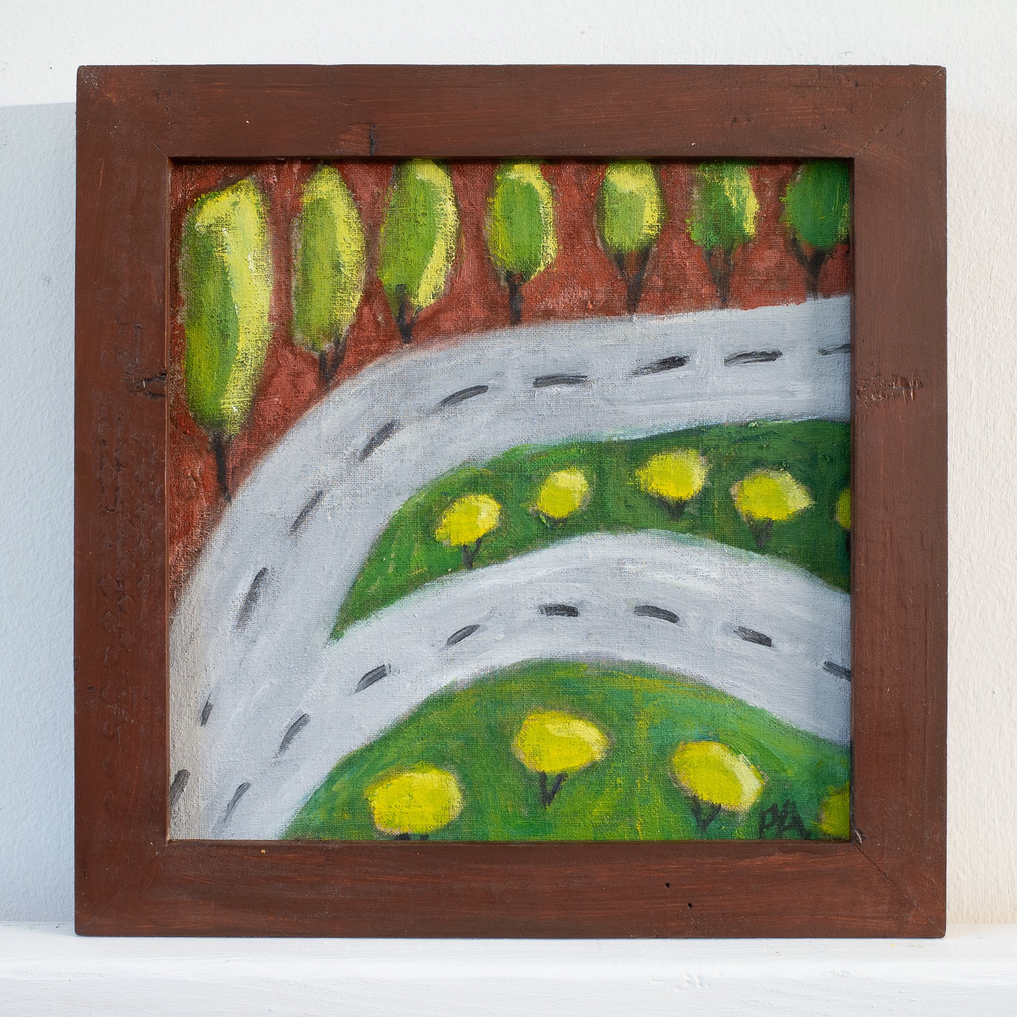 Aerial View of Highway Scene, 2025. Oil on linen. 10 x 10 inches.