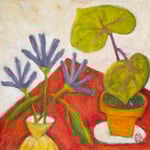 Begonia in Clay Pot and Purple Flowers, 2025. Oil on linen. 10 x 10 inches (framed).